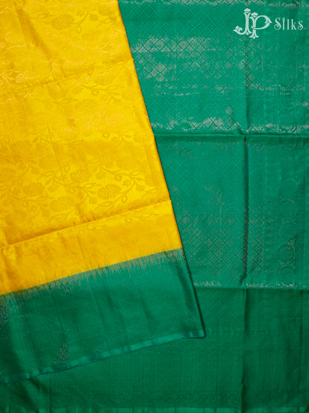Yellow & Greenish Teal Soft Silk Saree - D1826