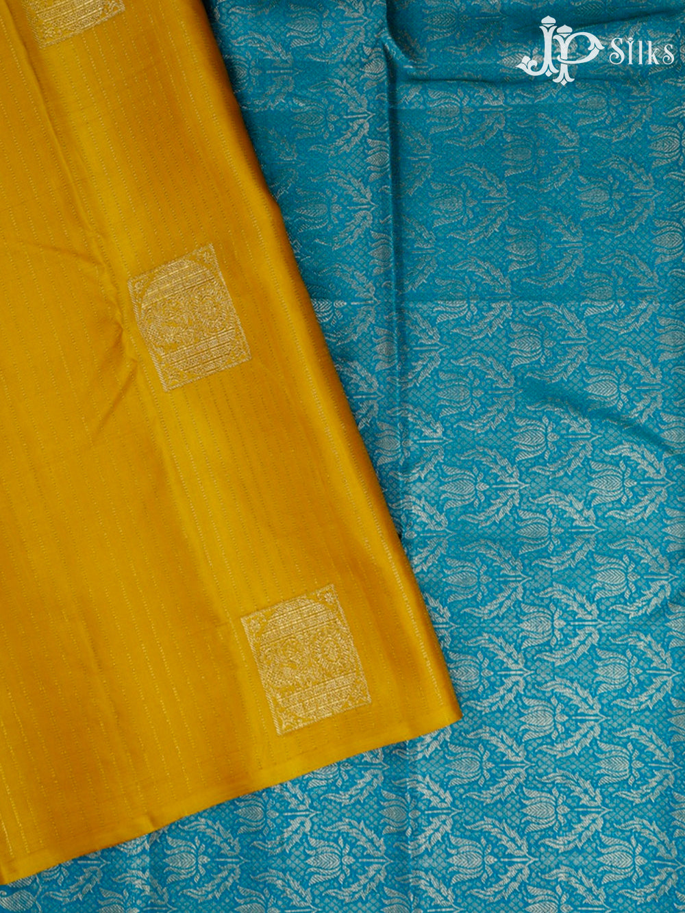Yellow And Peacock Blue Kanchipuram Silk Saree - F430