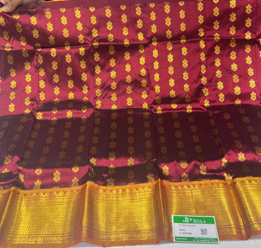 Shop online at JP Silks and find the perfect Pattu Pavadai to adorn your child in timeless beauty. Crafted with love, each piece promises to become a cherished addition to your child's wardrobe.