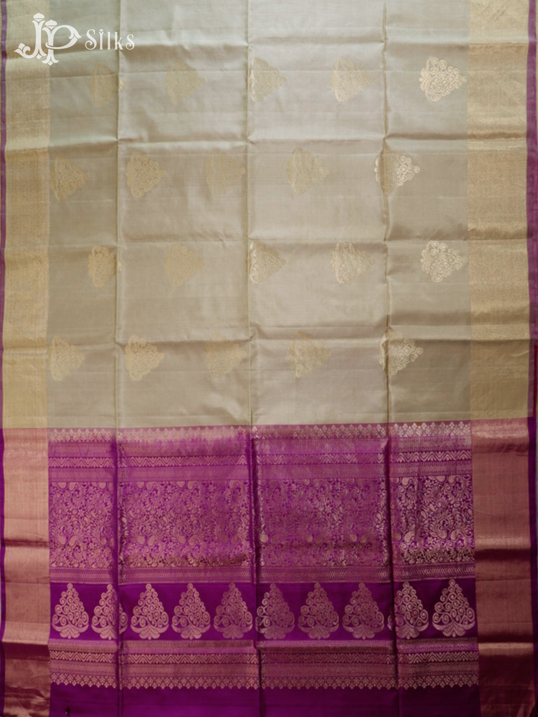 Matte Beige & Purple Soft Silk Saree - E5086-view1