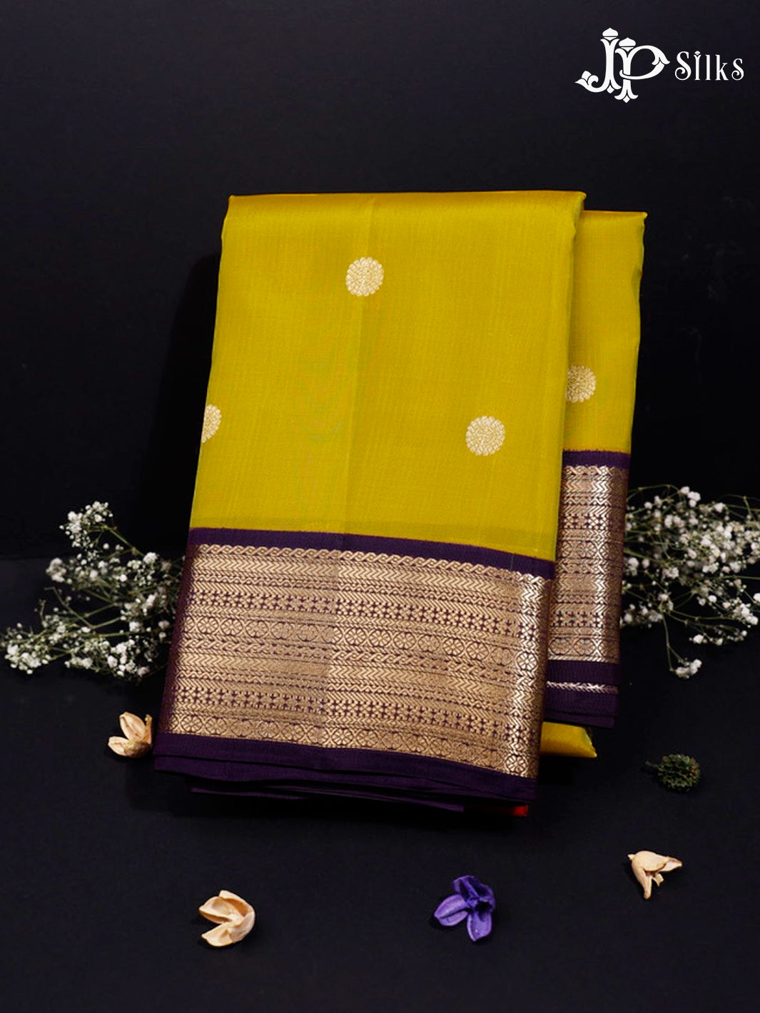 Lemon Green and Violet Pure Silk Mixed Saree - G372