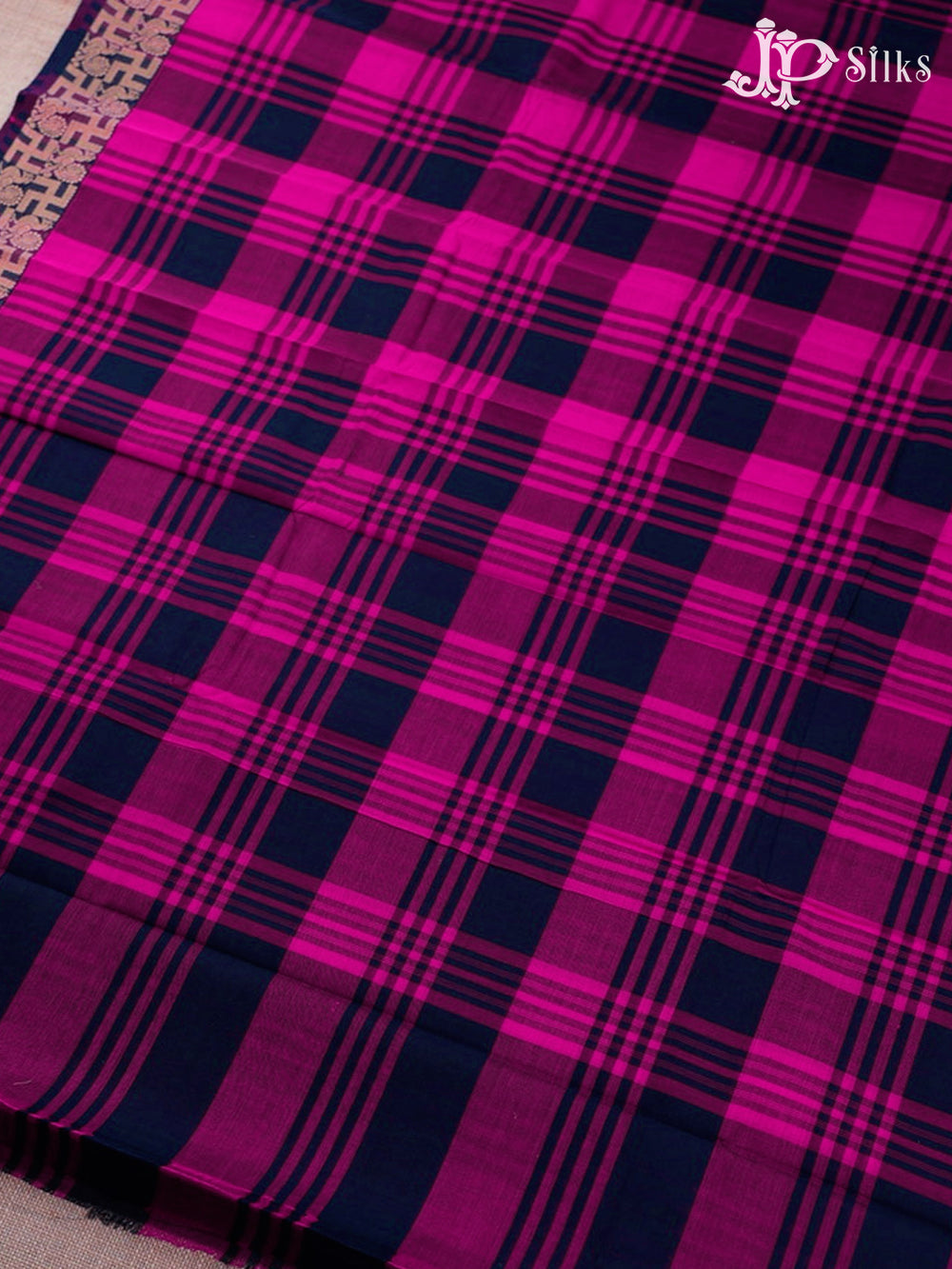 Pink And Navy Blue Cotton Saree - D2530