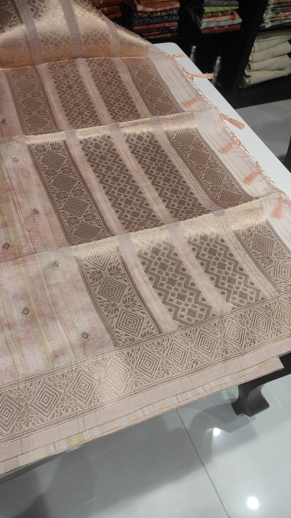Light Onion Pink Semi Kora Silk Saree - E5892