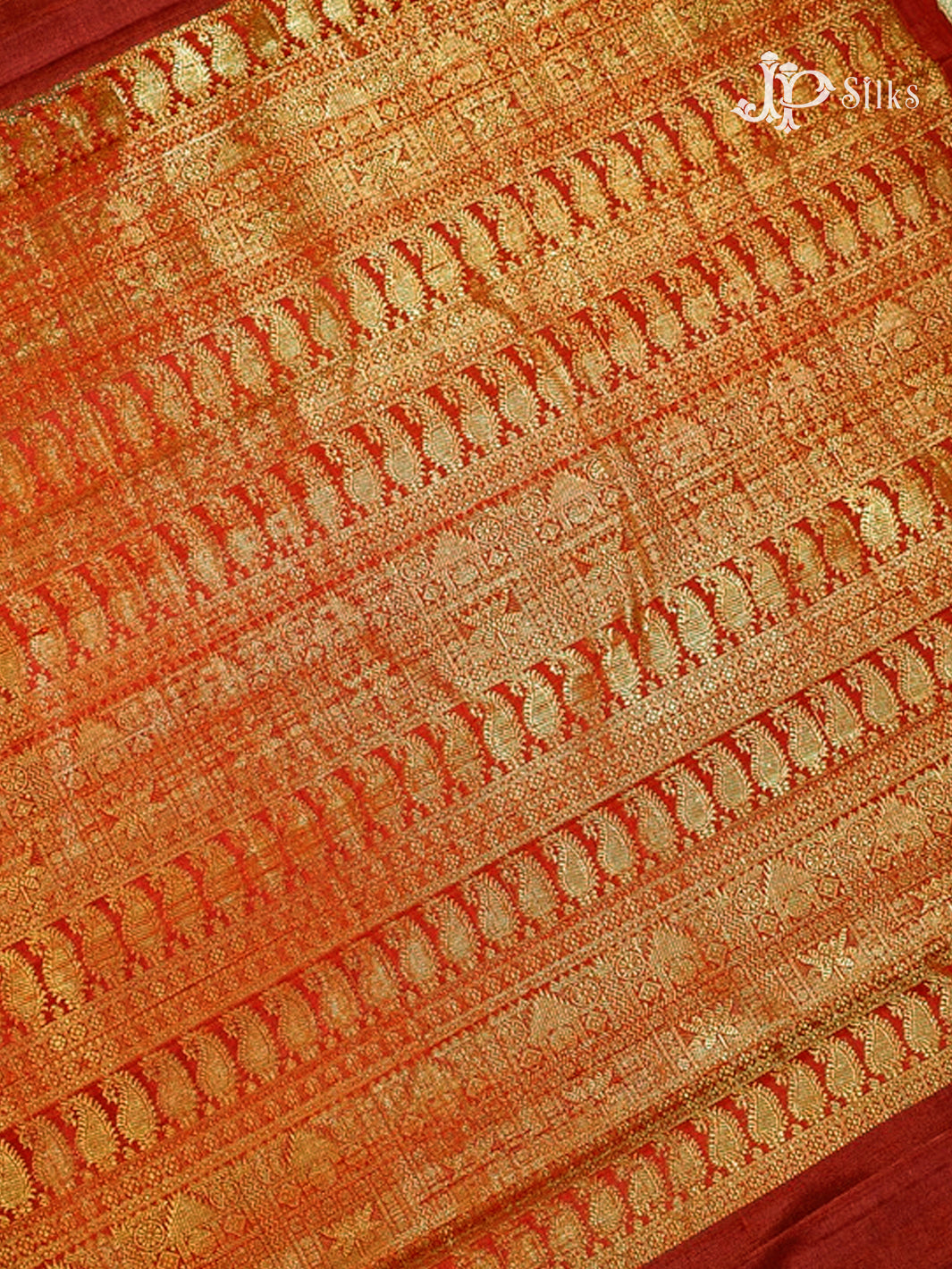 Regal Grace unfolds in a maroon Kanchipuram Silk Saree from JP Silks, where the body blooms with paisley motifs in a refined jute finish. The pallu glimmers with temple-inspired zari artistry featuring mango, lotues and intricate strip lines, creating a divine aura of craftsmanship. Each weave glows with the warmth of heritage, brought alive through golden zari that whispers tales of devotion with a plain Blouse. Drape it to radiate grandeur and poise, perfect for function wear and festive celebrations. Handwoven by skilled artisans who preserve the soul of Kanchipuram, this saree stands as a statement of regal charm and everlasting grace.