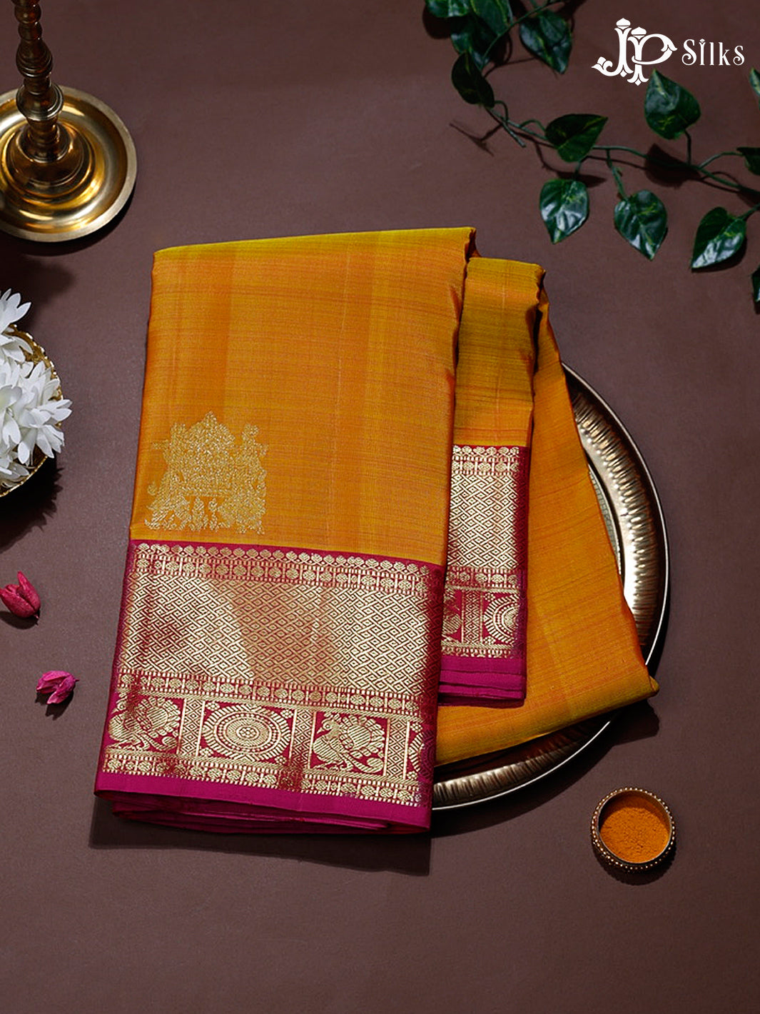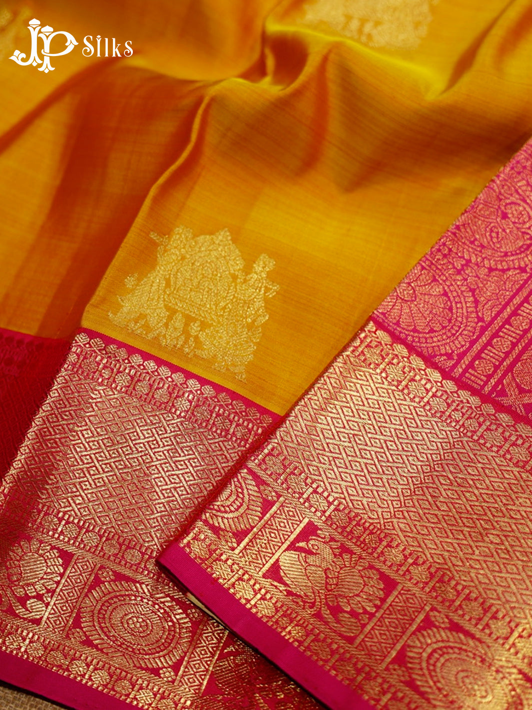 Mustard Yellow & Pink Kanchipuram Pure Silk Saree - E4707