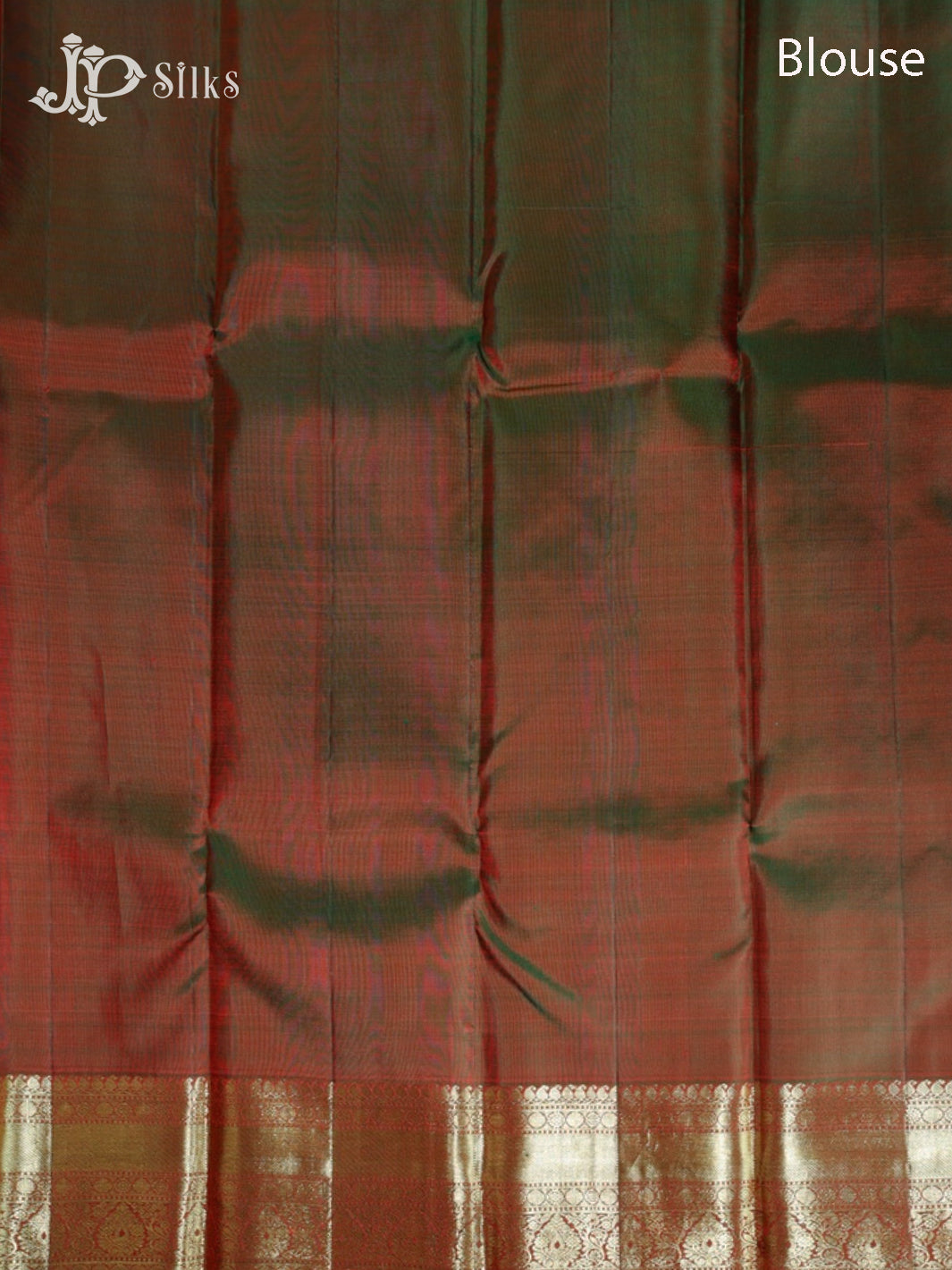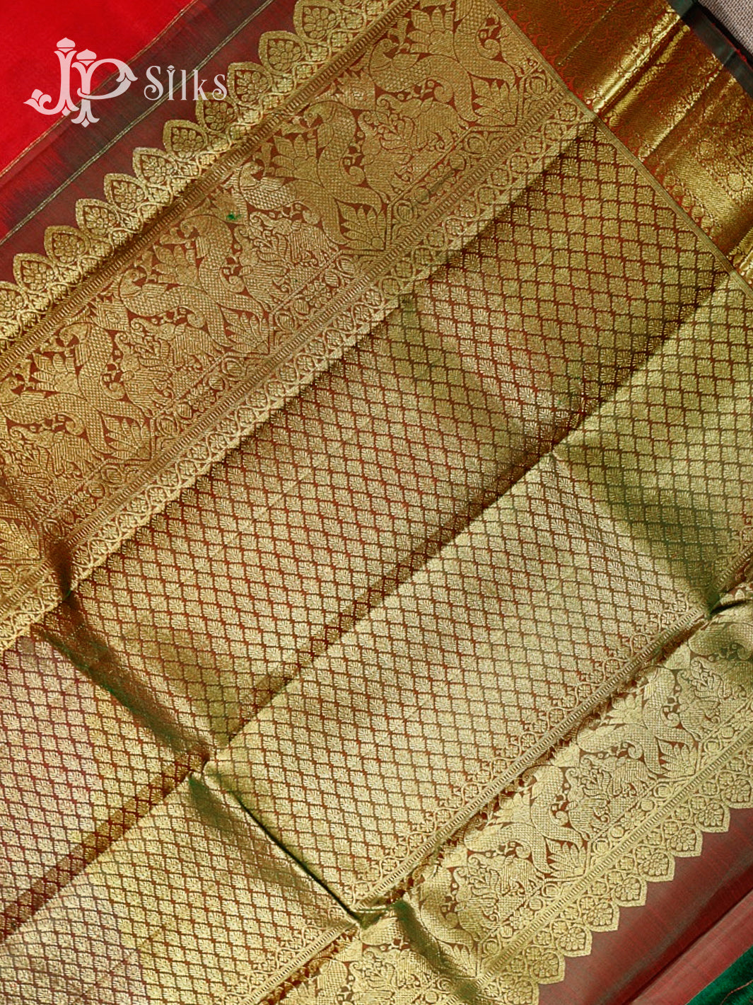 Red & Manthulir Green Kanchipuram Silk Saree - F2329